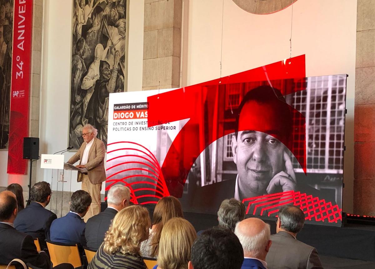 Numa sessão que contou com a presença do Senhor Secretário de Estado do Ensino Superior, Pedro Nuno Teixeira, bem como representantes das instituições de ensino superior e do poder local, entre outros, Ana Gabriela Cabilhas, Presidente da FAP, entregou o prémio a António Magalhães, diretor do CIPES, pelo reconhecimento do trabalho científico que este Centro de Investigação tem produzido e, particularmente, por este projeto.
