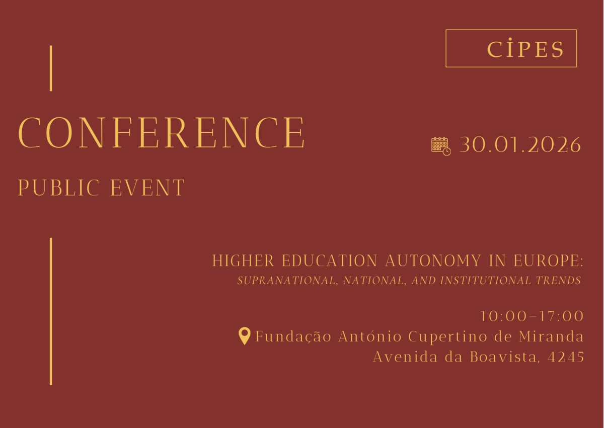 No âmbito do projeto Higher Education Autonomy in Europe: Supranational, National and Institutional Trends (HEAE-SNIT, 2023–2026), convidamos a comunidade académica a participar na conferência dedicada à análise das transformações recentes da autonomia do Ensino Superior na Europa.